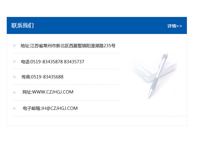 傳真:0519-83435688    郵編:213135    網址:WWW.czjhgj_com.xyjxbmw.com    電子郵箱:JH@czjhgj_com.xyjxbmw.com
